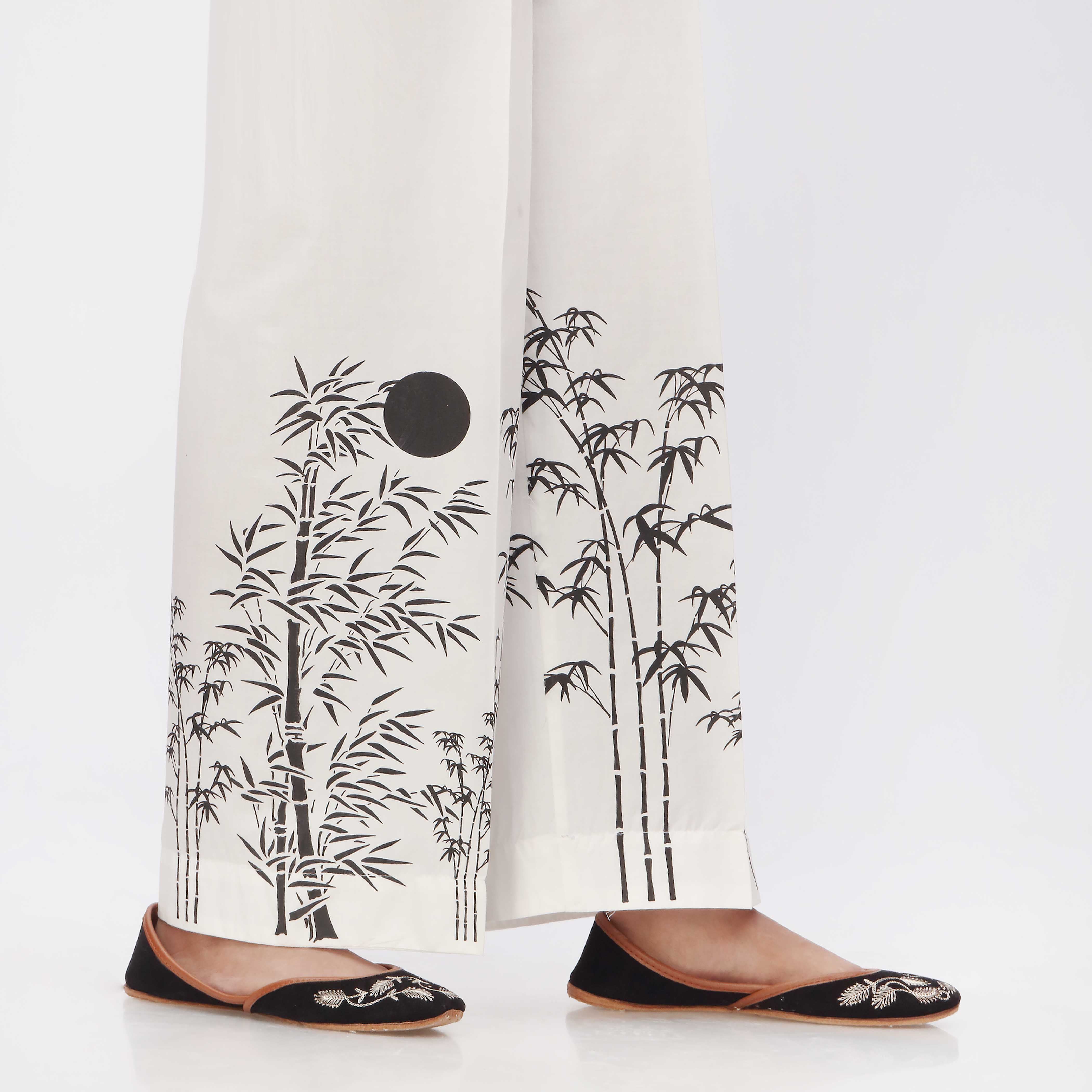 Black Printed Cambric Straight Fit Trouser CS3556