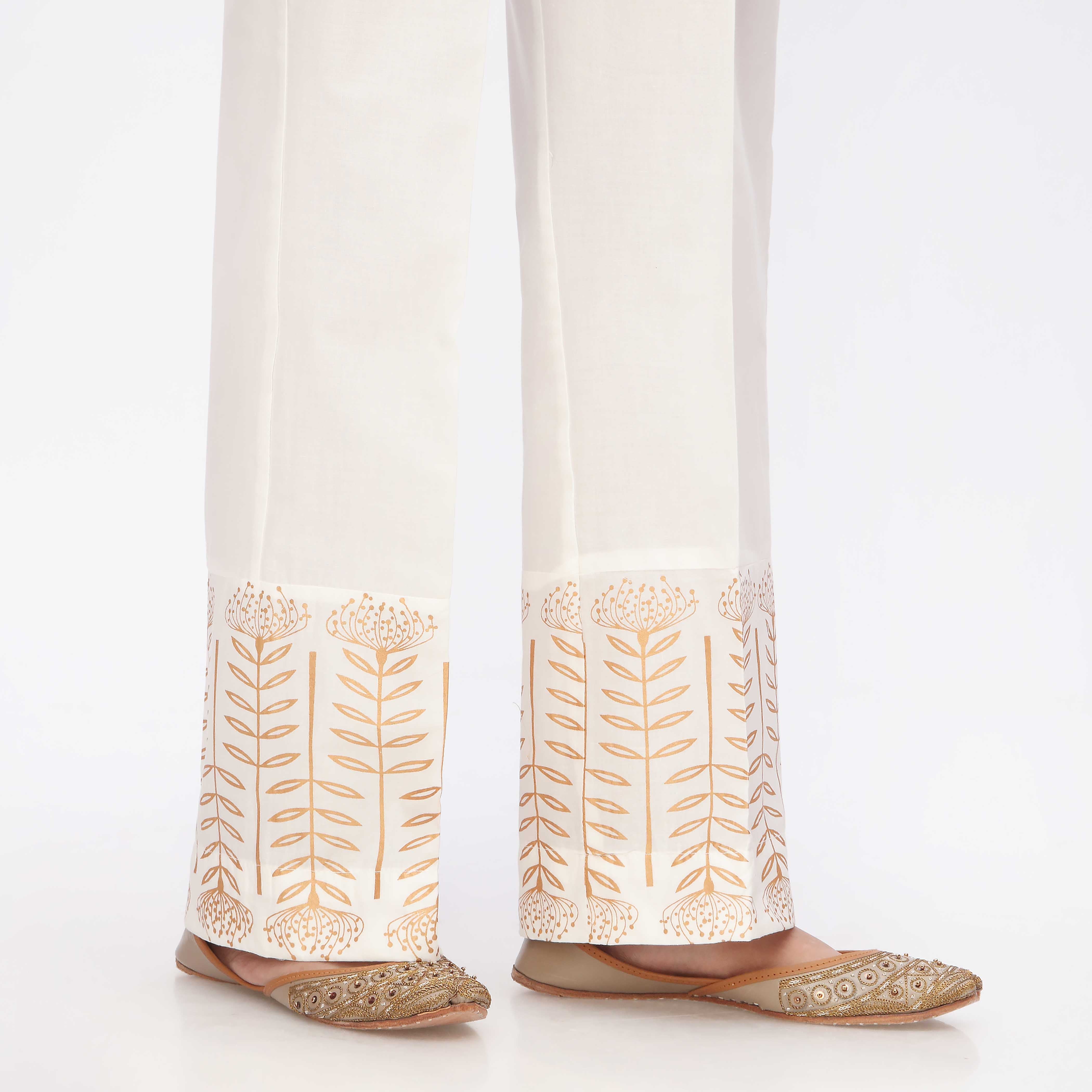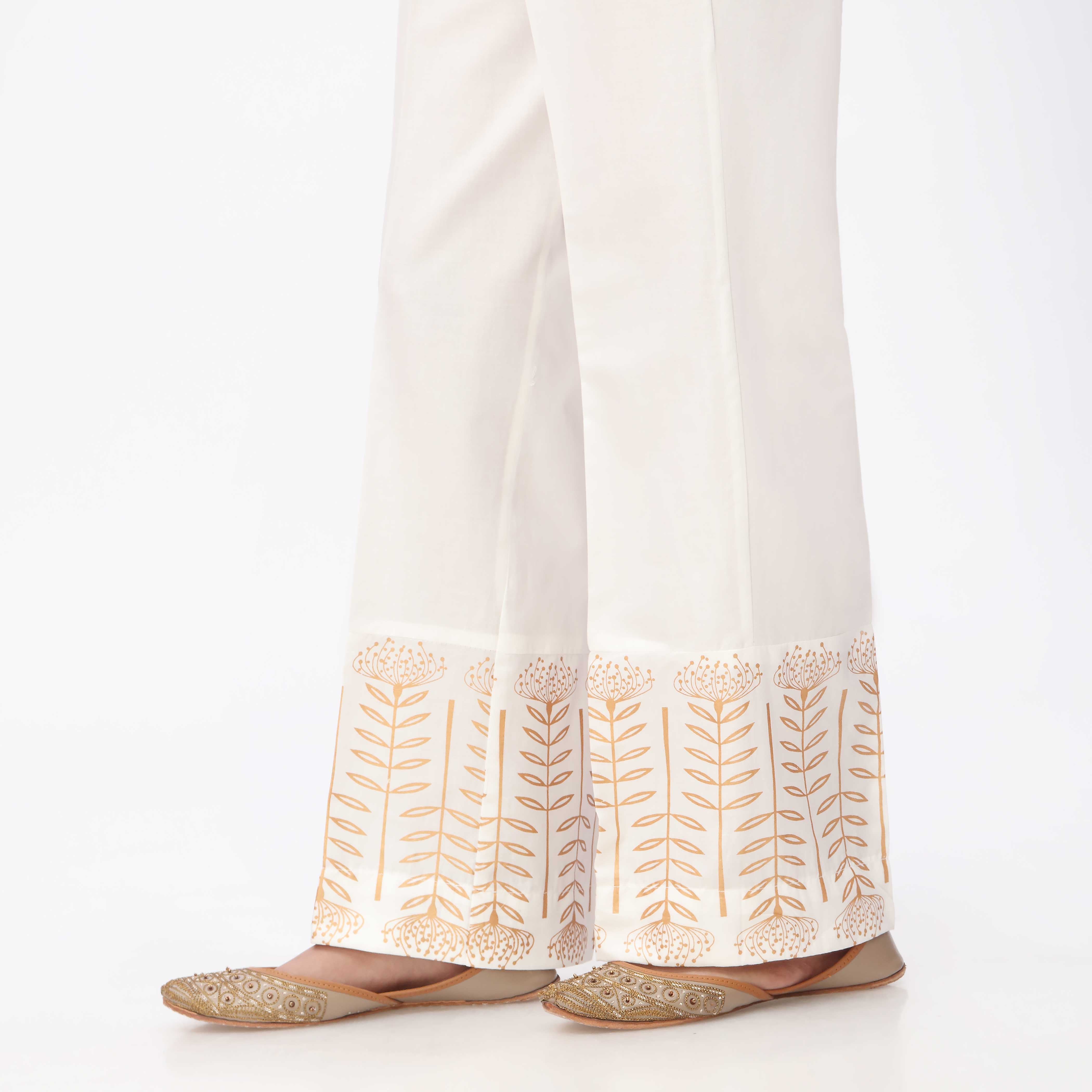 & Free ShippingWhite Printed Cambric Straight Fit Trouser CS3549