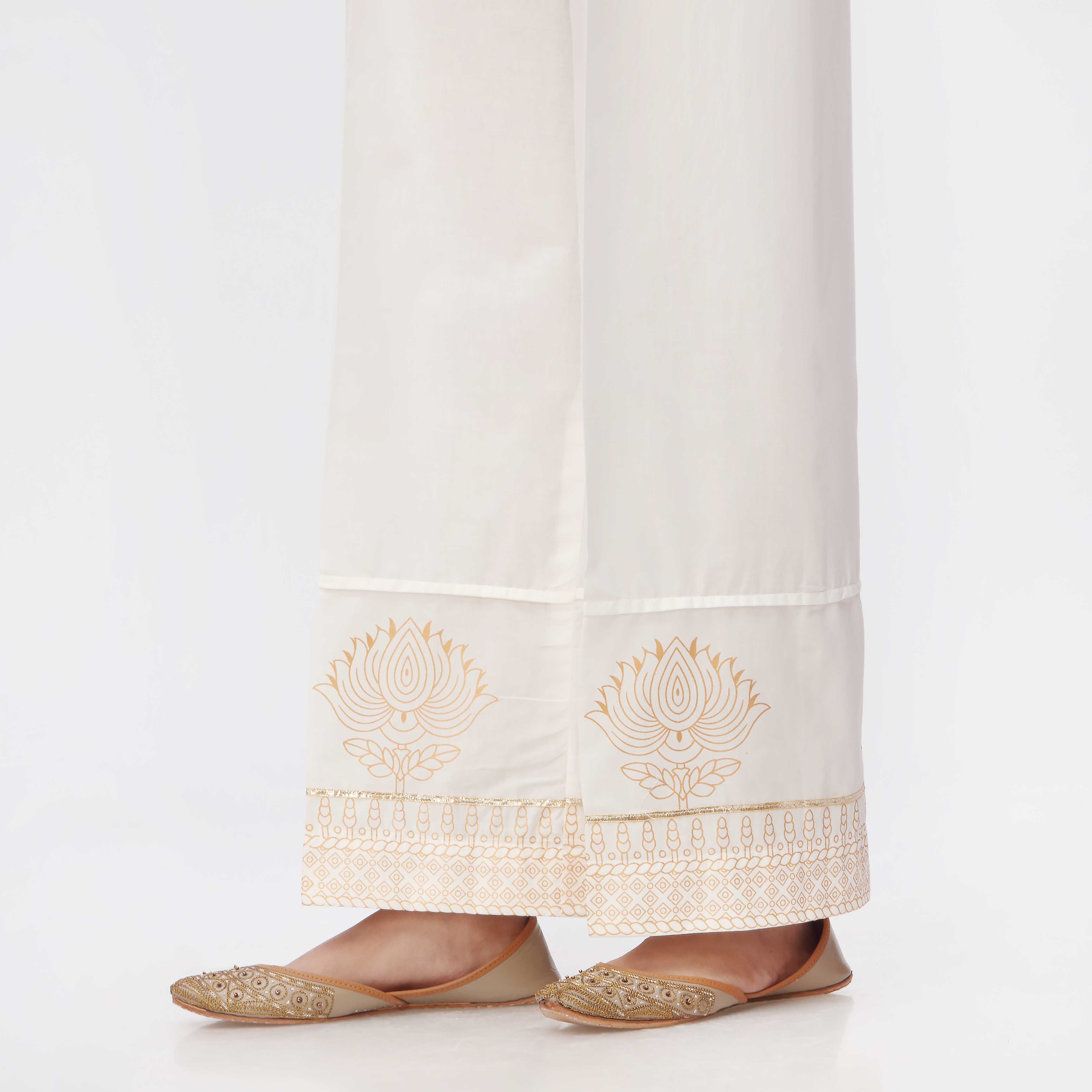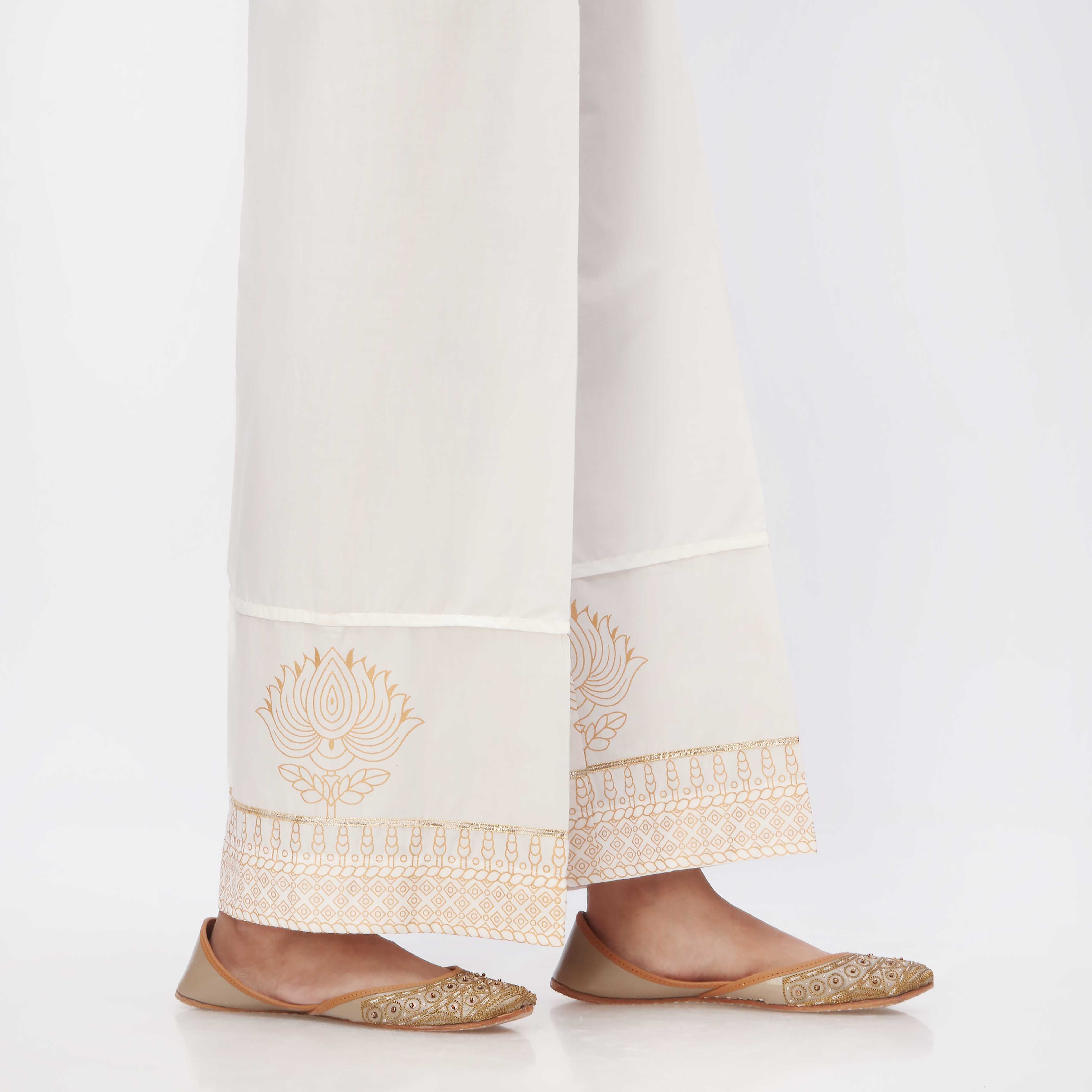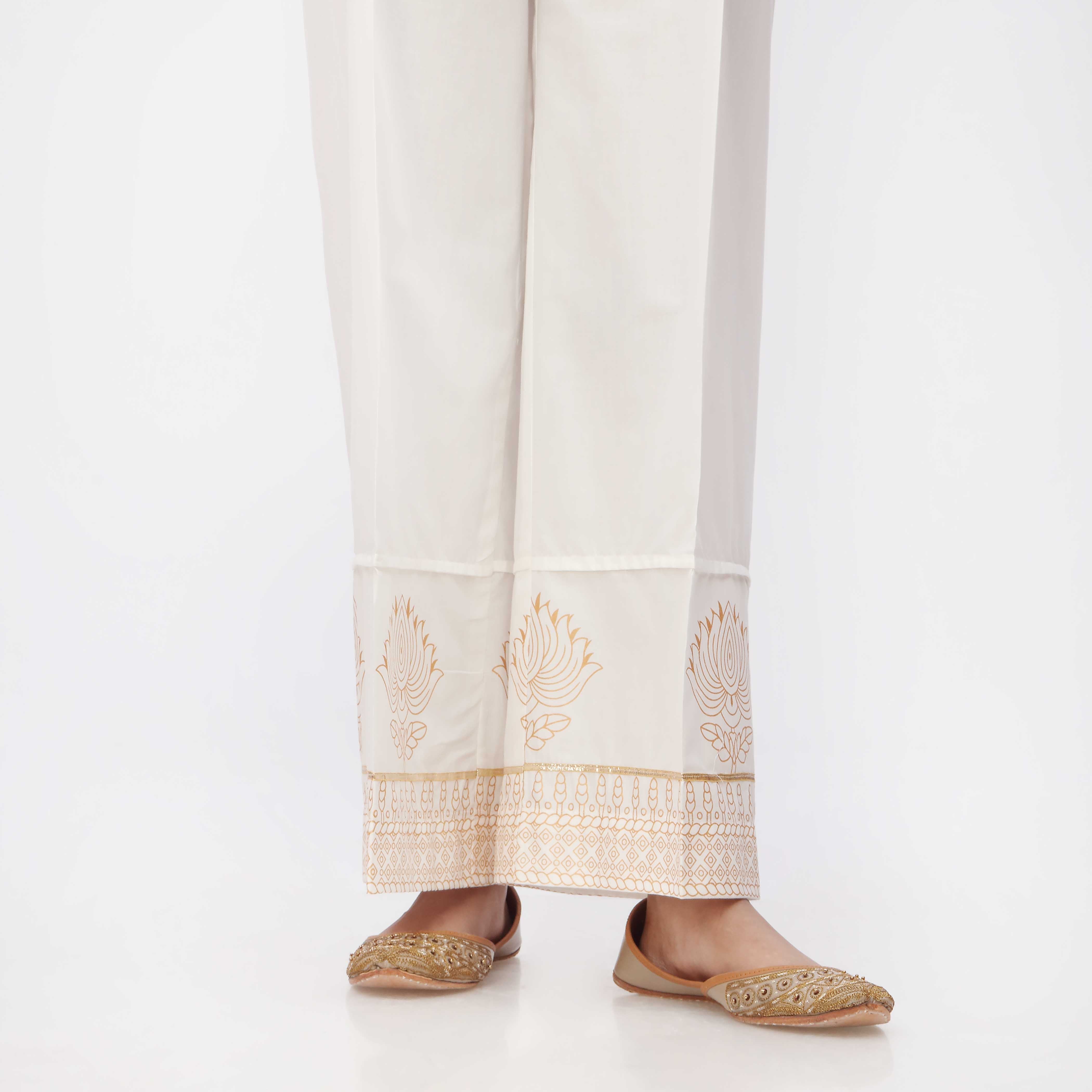 & Free ShippingWhite Printed Cambric Straight Fit Trouser CS3551